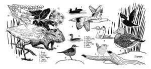 La Colectiva de artistas (Aner y Tikay), también participó del monitoreo de otoño con los estudiantes, sumando a la ilustración más especies presentes en la costanera, como boldo, pilo pilo y coipo. Este último se incluyó como gesto de memoria, luego de que hace unos años una cría fuera atacada bajo la escalera donde hoy se observa parte del mural.