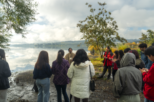 Lo biocultural se refiere a la relación profunda entre la naturaleza y la cultura. Esta nueva noción que se está empleando dentro de la conservación y la educación ambiental, reconoce que las personas y los pueblos no están separados de su entorno natural, sino que lo cuidan, lo nombran, lo usan y lo transmiten a través de sus saberes, prácticas y formas de vida propias. En este territorio el pueblo mapuche ha sido el principal custodio del equilibrio de la naturaleza, por esa razón, el segundo encuentro con los estudiantes estuvo dirigido por Juan Paillamilla, habitante del territorio quien conversó con los jóvenes sobre la relación entre las personas, el lago y los seres que habitan el Mallolafquen (Lago Villarrica).